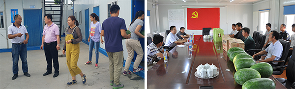 進(jìn)入盛夏,高溫炙烤,暑氣逼人,尤其是入伏以來(lái),氣溫更是居高不下,為確保施工現(xiàn)場(chǎng)安全生產(chǎn),保障一線(xiàn)管理人員及工人的人身安全和身體健康,7月13日至23日,公司領(lǐng)導(dǎo)班子全體成員組成八個(gè)慰問(wèn)組奔赴濟(jì)南、青島、濰坊、德州、濟(jì)寧、鄭州等多個(gè)地市的22個(gè)項(xiàng)目部,開(kāi)展了以“情系一線(xiàn) 夏送清涼”為主題的慰問(wèn)活動(dòng)。